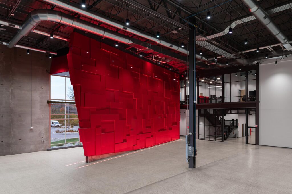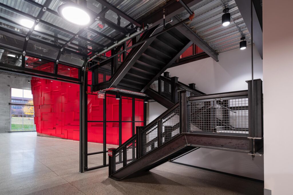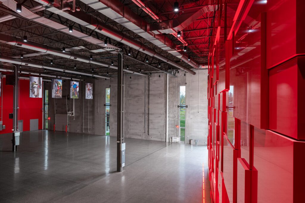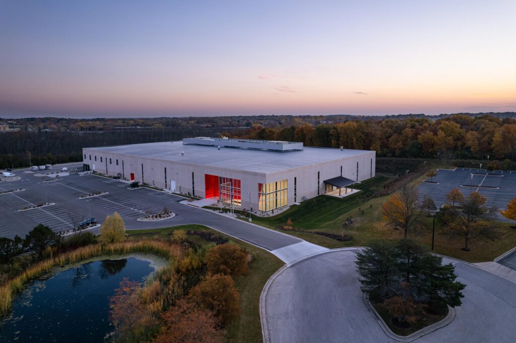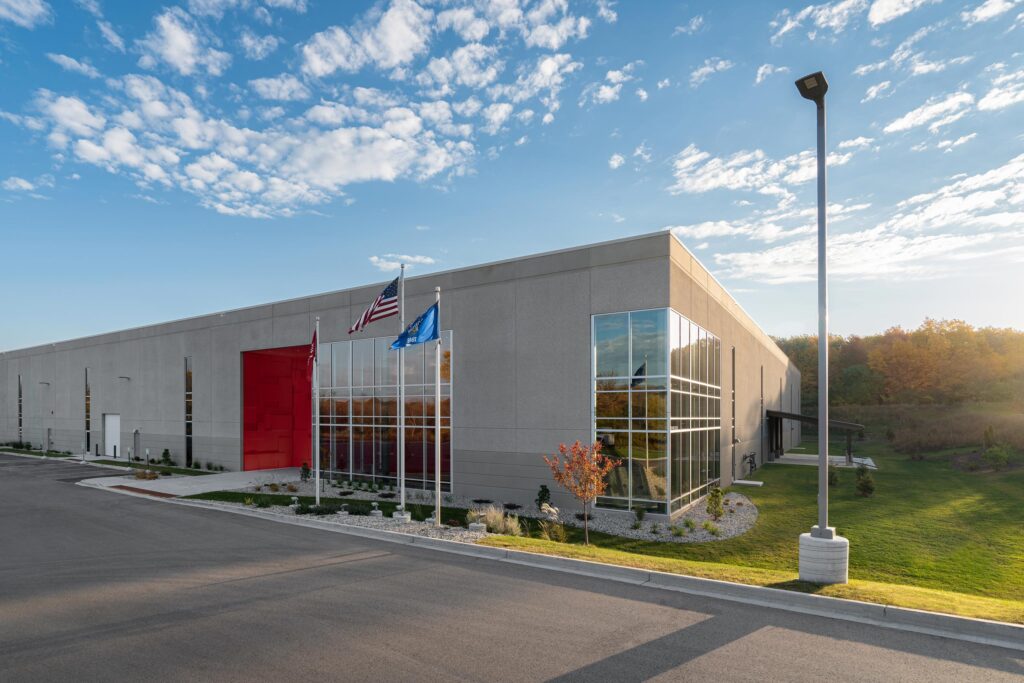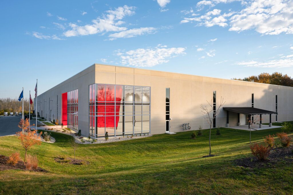 Located in the Woodland Prime Business Park in Menomonee Falls, Milwaukee Tool – Red Line is a testament to innovative industrial architecture and cutting-edge facility design. This 211,600-square-foot, two-story building, a masterpiece of modern design, was meticulously crafted to meet Milwaukee Tool’s expanding research and development needs. The structure’s insulated precast concrete exterior featuring punched vertical openings, bold red accent wall, and the glass entry portal set a confident tone for what lies within.
